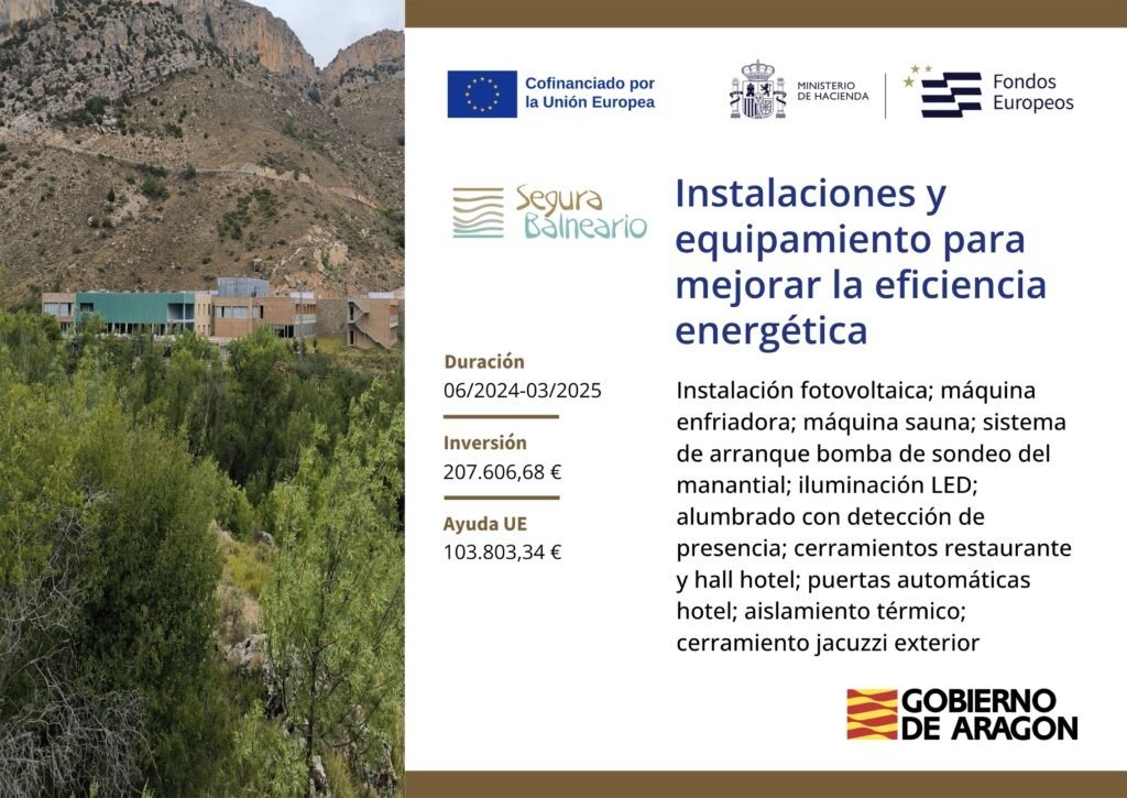 3. Instalaciones y Equipamiento para Mejorar la Eficiencia Energética Objetivo: Disminuir el consumo energético y adaptar el balneario a criterios de eficiencia y sostenibilidad.